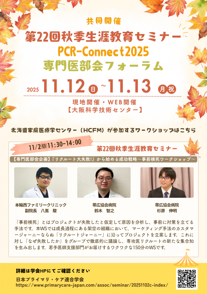 🍂秋季セミナー🍂HCFM医師も参加します。詳細は学会HPにてご確認ください☺️