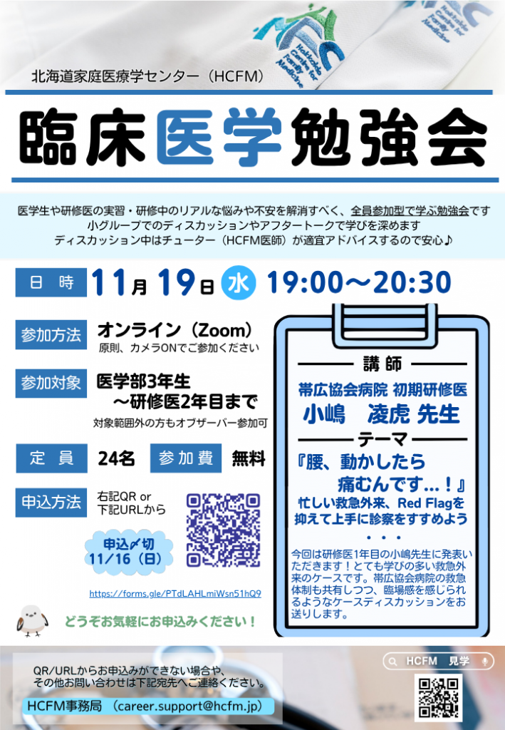 講師: 小嶋 凌虎先生(帯広協会病院 初期研修医1年目)