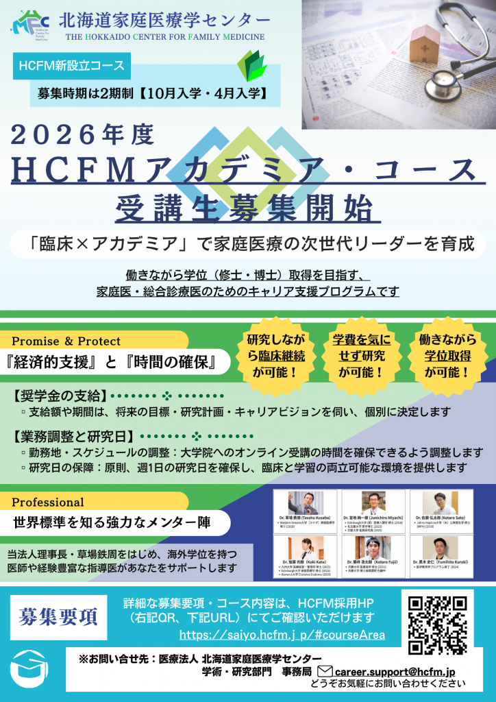 【医師募集】2026年度 HCFMアカデミア・コース受講生募集中 | お知らせ | 北海道家庭医療学センター(HCFM)見学案内・医師採用サイト