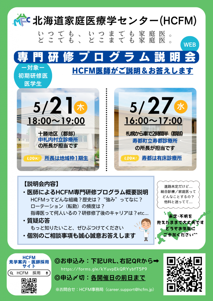 【WEB開催】5月 HCFM専門研修プログラム説明会